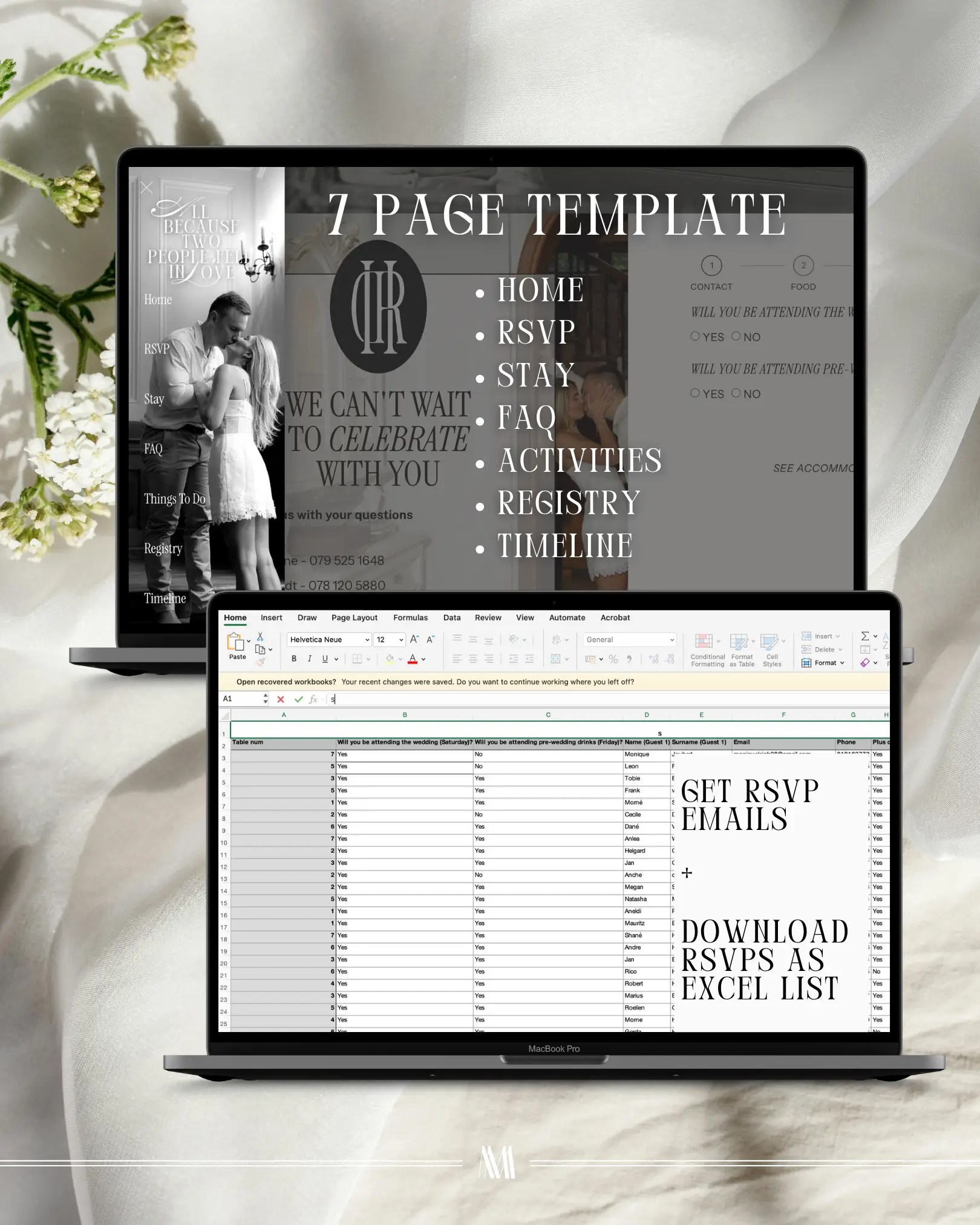 Professional RSVP Form: Guests can RSVP online, and you’ll receive responses directly via email or export them instantly as an Excel list.